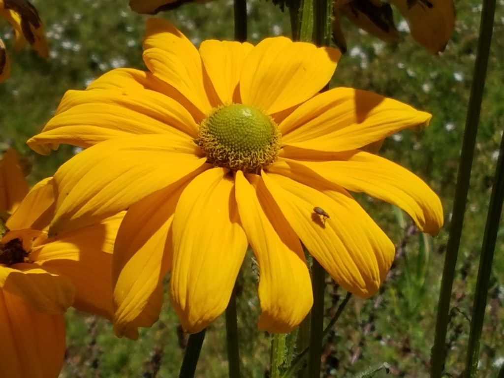 It was in last year’s growing season while traveling to visit family, I spied through the backyard window, a row of plate sized brilliant sunflowers. I had arrived on their doorstep full of grief and great loss. Yet this day was brilliant and bright blue, and I was startled out of my grief at the joyous sight of these fun-flowers rising above the fence seeing towards the far-flung San Francisco hills.  It caught me quite by surprise. And of course, I quickly jaunted out there, camera in hand, taking lots of pictures, this way and that. I wanted to catch every angle of petal and leaf, intending to sear its memory deep into me.