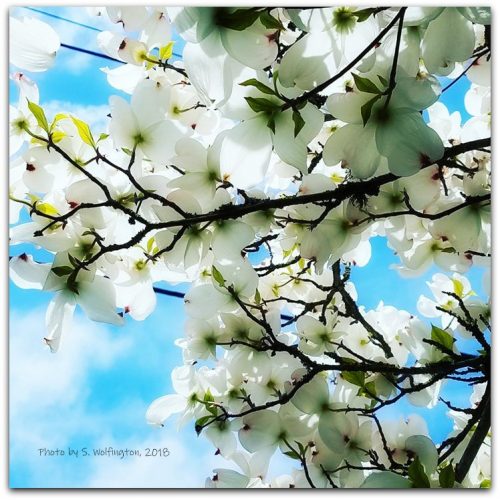 I witness love in the eyes of a friend, blossoming pink Dogwoods flowers or brilliant white, ship like clouds sailing upon a blue sea sky. I see where love is not felt. I say a prayer or extend a hand.